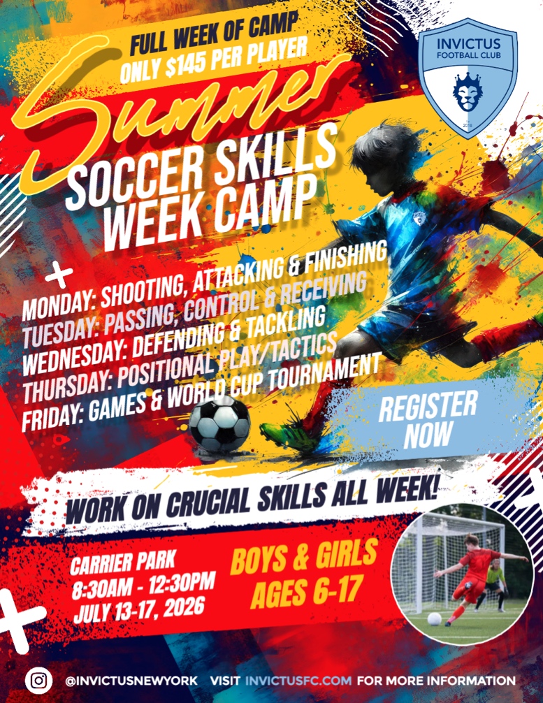 Invictus FC Youth Soccer Club is the leading club in Central New York when it comes to player development and providing a positive experience for your child within our coaching environment. Launched by bestselling authors and former professional soccer players Paul Mairs and Richard Shaw, Invictus focuses primarily on the development and care of every player in the club through a proven curriculum and competitive schedule.